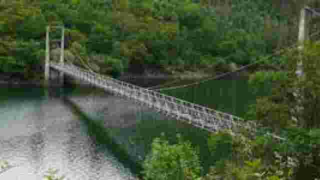 Puente colgante sobre el río Navia