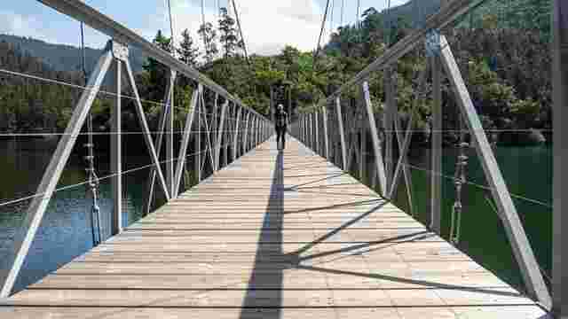 Ruta circular sencilla que combina bosque, paisaje de embalse y el emblemático puente colgante
