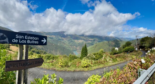 San Esteban de los Buitres es un singular pueblo situado en una empinada ladera sobre el río Navia y declarado Bien de Interés Cultural en 2013. Su caserío, prácticamente inalterado durante décadas, permite comprender la organización tradicional de los pueblos de montaña. Destaca su arquitectura adaptada a la fuerte pendiente, con viviendas escalonadas sobre la roca y comunicadas mediante veiriles, pasadizos elevados que sustituyen a las estrechas calles peatonales. Construido con pizarra, piedra y madera, el conjunto refleja una economía tradicional basada en pequeños cultivos, bodegas, molinos, colmenares y el aprovechamiento del monte comunal. El enclave se completa con un mirador junto a la AS-12, desde donde se obtienen amplias vistas del valle del Navia.